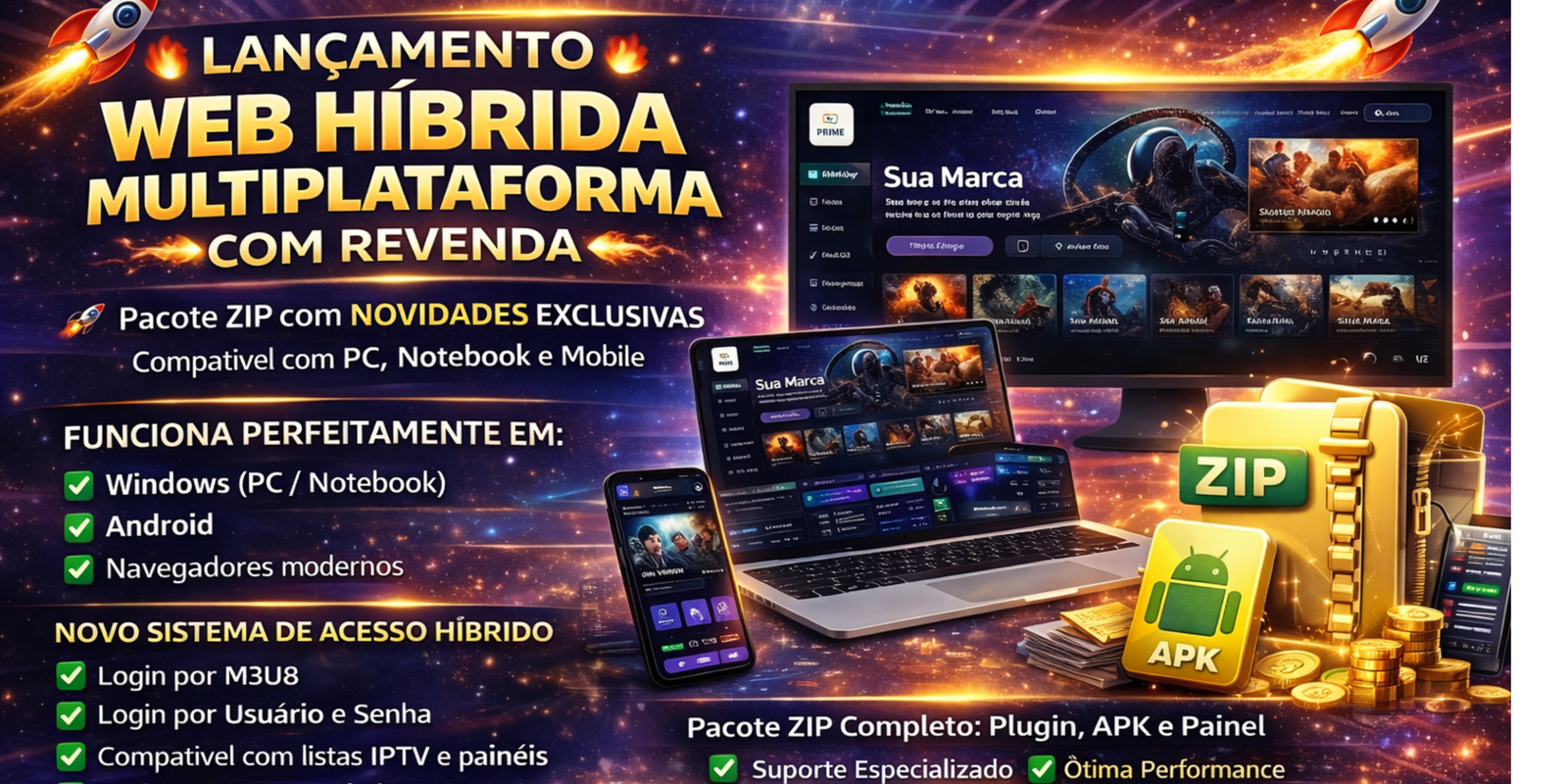 LANÇAMENTO-WEB HÍBRIDA 2026 MULTIPLATAFORMA COM REVENDA E APK