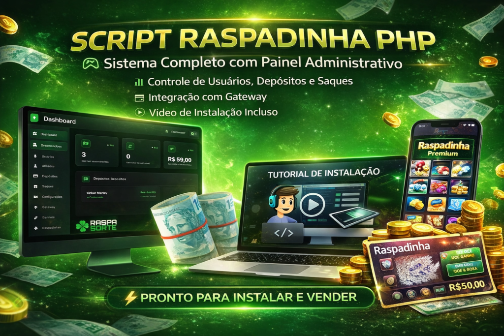SCRIPT RASPADINHA PHP COM PAINEL E VIDEO DE INSTALAÇÃO