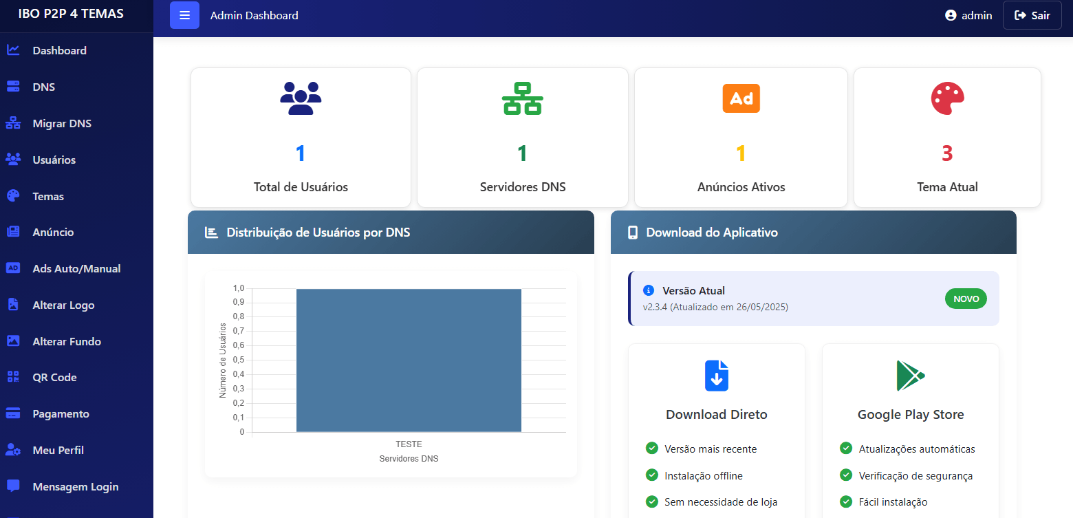 O IBO PLAY é um aplicativo completo para gerenciamento de serviços IPTV, projetado para proporcionar total controle e personalização para masters, revendas e subrevendas. Com apenas 24 MB, o aplicativo é rápido, fluido e de fácil acesso, oferecendo uma experiência prática e eficiente para assistir filmes, séries e canais. O painel de controle intuitivo permite que cada nível de usuário gerencie suas operações de forma personalizada, com uma ampla gama de funcionalidades.