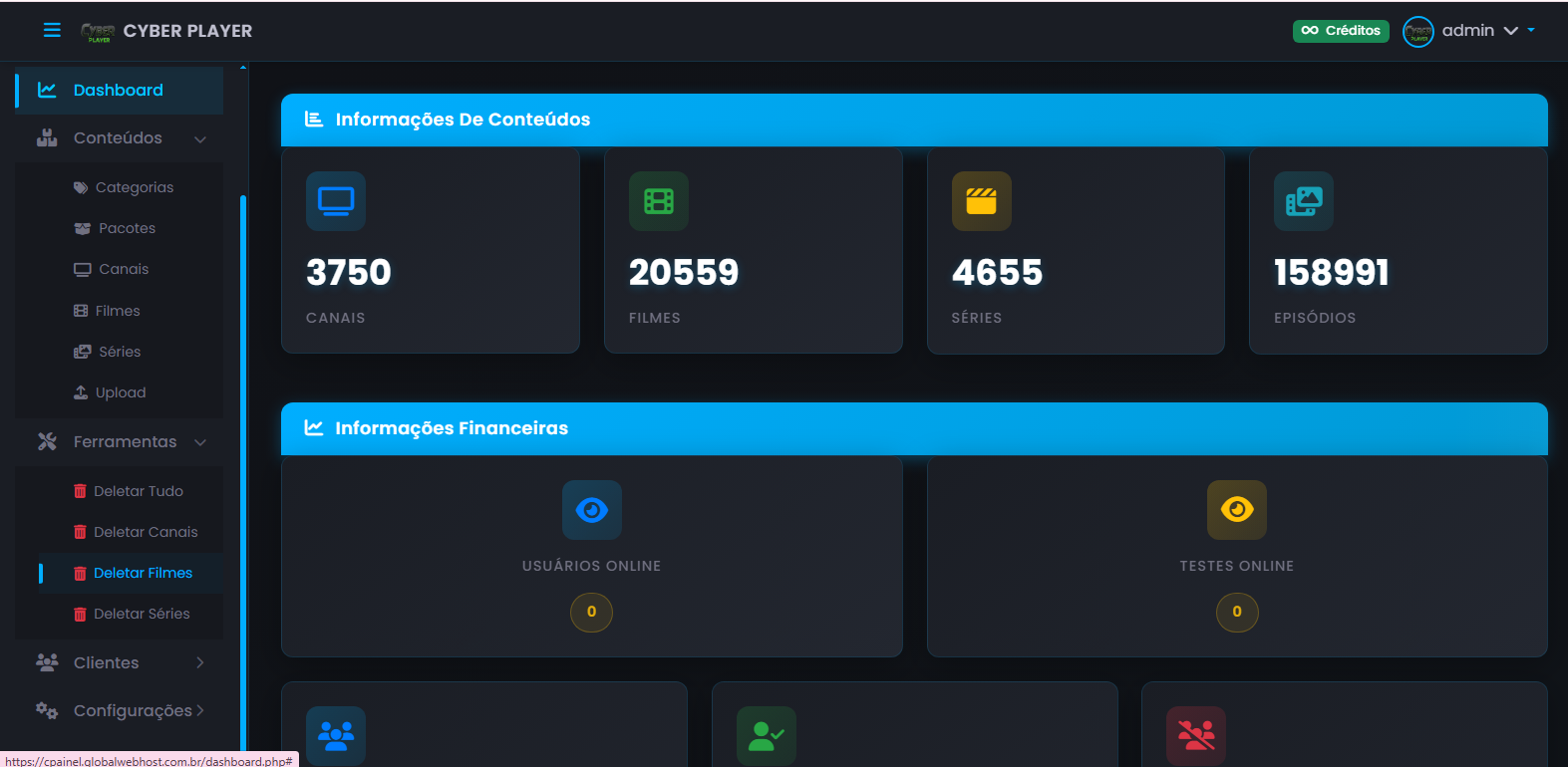 SCRIPT PAINEL DE GERENCIAMENTO STREAMING – CYBER PLAYER